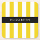 Yellow Stripes, Striped Pattern, Lines, Your Name Square Paper Coaster