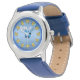 Looking like blimps submerged in the blue ocean, the hour markers on this watch face are happy yellow submarines. At centre is a friendly, blue fishy & as a BONUS, there's a customisable text field for the recipient's first name (limited to 9 characters). Numerals on Bezel count down the seconds.