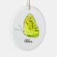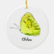 Ceramic ornament with a cute little yellow butterfly with template field for a name or other text. Background colour and font may be changed by choosing ~ Customise it! Would make a great doorknob hanger for a girl's room. © Little Wing Photography & Design