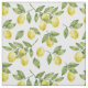 Yellow summer watercolor lemons with green leaves fabric