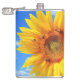 Yellow Sunflower and Bees on Blue Sky - Summer Day Hip Flask