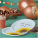 Floral Birthday paper plate, with a yellow sunflower peeking out on a blue background. With black typography lettering, you can customise with your own text. A great item to add to your summer birthday party!