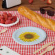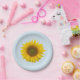 Sunflower plate, with a pale blue background yellow colours. A cute floral addition to your next summer barbecue or cookout.
