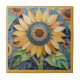 Yellow Sunflower Faux Mosaic Blue Green Tile