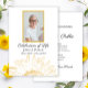 Invite guests to remember your loved-one after their passing with the pretty Yellow Sunflower Graphic Celebration of Life Invitation. This classy and cheerful custom flowery funeral memorial tribute invite features a digitally enhanced floral photograph of a yellow sunflower blossom with a bright white background. Personalise it with a picture, name of the deceased and birth and death dates. Available as a printed invitation for mailing and/or as a digital download for easy sharing digitally online.
