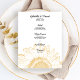 Customize the pretty Yellow Sunflower Graphic Wedding Menu with the list of the food that you will serve at your summer or fall bridal shower luncheon, wedding brunch of marriage reception dinner with the salad or first course, entree or second course and dessert or third course. This elegant flowery wedding menu features a digitally enhanced floral photograph of a sunflower blossom with a white background.
