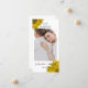 Announce your recent newlywed status after your private marriage or secret elopement with the pretty Yellow Sunflower Just Married Photo Card. Personalize it with the names of the bride and groom, wedding picture and their summer or fall marriage ceremony date. This simple yet elegant custom flowery marriage announcement photocard feature a floral photograph of blooming yellow sunflowers adorning the corners with a white background. Available as a printed invitation for mailing or as a digital download for easy sharing digitally online.