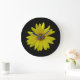 Yellow Sunflower on black background Large Clock