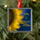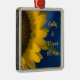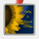 Customise the pretty Yellow Sunflower on Blue Wedding Square Premium Ornament with the personal names of the bride and groom and their summer or fall marriage ceremony date. This classy custom botanical nuptial ornament features a close up floral photograph of a yellow garden sunflower blossom with a blue background.