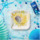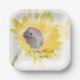 Yellow Sunflower on White Watercolor Wedding Paper Plate