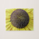 This awesome puzzle features a detailed close-up photograph of a pretty yellow Sunflower. The photograph was taken using macro photography and shows a beautiful contrast between the pale yellow petals and the big dark central seed head of the flower.