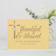 Express your gratitude this season with our modern and Cross Yellow Thankful and Blessed Thanksgiving Cards. Adorned with charming watercolor sunflowers, this stunning set evokes the beauty of autumn fall. The front features a tasteful script typography saying 'Thankful & Blessed' adding a touch of warmth in every line. The back of the card has a text box grouping, allowing for personalised messages to loved ones or to add your favourite scripture. Its simplicity provides a perfect canvas for your heartfelt Thanksgiving greetings. Each card is printed on high-quality paper, ensuring a premium feel for the recipients. The perfect mix of elegance and simplicity, these cards serve as a beautiful reminder of the spirit of Thanksgiving. Designed by Simple Desert Designs Studio.