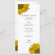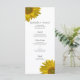The pretty Yellow Sunflower Wedding Menu can be personalised with the names of the bride and groom, venue location, date and details of the meal that you will serve at your summer or fall bridal shower luncheon, marriage reception dinner or post wedding brunch. This simple yet elegant floral wedding menu features yellow sunflowers adorning the corners with a white background. Perfect inspo for your summery garden party celebration event.