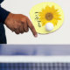 A bright and sunny design with a photograph of a sunflower and a template for first name.