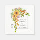 These paper napkins are perfect for adding a touch of elegance to your fall wedding decor. The design features a beautiful arch frame with yellow watercolor sunflowers and leaves in autumn colours on the upper left part, which adds a touch of vibrancy and natural beauty to the overall design. Your initials are also included in the design, making it more personal. The names are written in script typography, adding an extra layer of sophistication to the design. These napkins are perfect for use during your wedding reception or rehearsal dinner, and they’re sure to impress your guests.