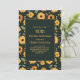 Cute yellow sunflowers on black 60th birthday party invitation for women. Personalise by adding the name of the guest of honour, her age, and her party information. Contact us for help with customisation or to request matching products.