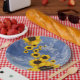 Realistic golden yellow sun flowers blowing across a Cornish sky is an original design from 2 original pieces. The sunflowers were hand painted digital renderings, and over laid on an original photograph of a summer sky in Cornwall. Perfect for picnics, barbecues and indoor events where you want bright, fun flatware.