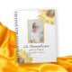 Funeral Guest Book. This pretty custom flowery memorial tribute notebook features a digitally watercolor painted floral photograph of yellow sunflower blossoms adorning the corners with a white background. Personalise it with birth and death date, name and picture of the deceased.