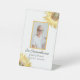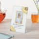 Remember the life of your loved one after their death with the cheerful Yellow Sunflowers Watercolor Celebration of Life Funeral Pedestal Sign. This pretty custom flowery tribute memorial signage features a digitally watercolor painted floral photograph of yellow sunflower blossoms adorning the corners with a white background and the words In Remembrance. Feel free to change the text and personalise it with a picture, name of the deceased and birth and death dates.