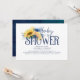 Sunflowers and navy blue flowers baby shower invitations