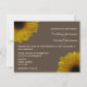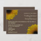 A fall wedding invitation featuring images of yellow sunflowers peeking from top left and bottom right corners. Background is brown, text is off white. Personalise with details of your occasion.