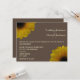 A fall wedding invitation featuring images of yellow sunflowers peeking from top left and bottom right corners. Background is brown, text is off white. Personalise with details of your occasion.