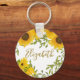 These simple yellow sunflowers personalised keychain has hand drawn watercolor flowers and a gold editable name. Cute and useful, too!