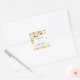 Sweet as can bee, bee themed baby shower sticker in various shades of yellow and brown featuring five bees, modern mono-line calligraphy image, sunflower floral arrangement and some honeycomb. This sweet as can bee, bee themed baby shower sticker is ideal for a gender neutral bee themed baby shower.