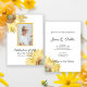 Invite guests to remember your loved-one after their passing with the elegant Yellow Sunflowers Watercolor Celebration of Life Invitation. This classy and cheerful custom flowery funeral memorial tribute invite features a digitally watercolor painted floral photograph of yellow sunflower blossoms adorning the corners with a bright white background. Personalise it with a picture, name of the deceased and birth and death dates. Available as a printed invitation for mailing and/or as a digital download for easy sharing digitally online.