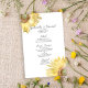 Customise the elegant Yellow Sunflowers Watercolor Wedding Menu with the details of the meal that you will serve at your garden party inspiration theme bridal shower luncheon, engagement party, wedding brunch, rehearsal dinner or reception by adding the salad or first course, entree or second course and dessert or third course. Personalise it with the names of the bride and groom, venue location and marriage ceremony date. This classy custom flowery wedding menu features a close up digitally watercolor painted floral photograph of yellow sunflower blossom petals adorning the corners with a white background.
