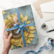 yellow sunflowers with pale blue background wrapping paper