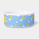Feed your dog or cat with this cute yellow sunshine and clouds patterned personalised pet bowl! This cute yellow sunshine and clouds pattern personalised pet food bowl is fun and playful with it's cute and textured sunshine and cloud repeating pattern. You can customise this pet food bowl and add your pets name by clicking "personalise this template". This unique and original cute sunshine and cloud repeating pattern was hand drawn by OhMyStarling! Your pet will enjoy eating or drinking out of this cute blue and yellow patterned food bowl.