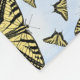 This design is of black and yellow Western Swallowtail butterflies, some of the most beautiful large butterflies in the world, floating on a blue sky with puffy white couds. My original painting is based on photographs I took in my own butterfly-friendly garden in the Southwest.