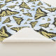 This design is of black and yellow Western Swallowtail butterflies, some of the most beautiful large butterflies in the world, floating on a blue sky with puffy white couds. My original painting is based on photographs I took in my own butterfly-friendly garden in the Southwest.