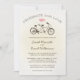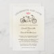 This darling wedding invitation design by The Spotted Olive™ features a tandem bicycle with two sweet hearts and the words "Celebrate Our Love" typeset in a fun font on a light yellow background. Copyright 2013-Present | The Spotted Olive™ | All Rights Reserved
