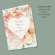 Warm tangerine, yellow, and cream watercolor rose images make a pretty background for a heart on this anniversary card for a wife. Inside the heart is your custom text in subtle aqua gray. The inside of the card has more custom text fields.