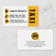 A white cover features yellow taxi cab colored buttons that house your prestigious name and contact details. To the right is the oversize business name "TAXI" which you can change.