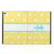 Elegant. modern and trendy lemon yellow and white geometric circles and floral pattern or background for iPad Cases – choose your model. Optional Teal Monogram, Initial and Name. Click the 'customise it' button to personalise your gift by adding your own name or initials. Choose your own font and colours to make it your own. This lovely girly and cute design will make a great gift for yourself or someone you love. For Apple iPad Air cases, iPad Mini cases and iPad cases and covers.
