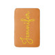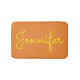 This simple bath mat design features a personalized name in yellow on an orange background.