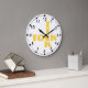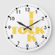 This lightweight acrylic wall clock face is modernly designed with the yellow words "Tick Tock" in a crossword puzzle style design. The design includes an outer ring of black elements and an inner ring of black numbers. Be sure to check out the smaller 8" diameter.