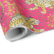 Yellow Tiger On Pink background Floral Wrapping Paper
