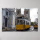 Yellow tram on Lisbon Cathedral in Portugal Poster