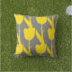 Yellow Tulips Gold Floral Flowers Patterns Grey Cushion