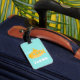An adorable luggage tag with cartoon of a yellow submarine with blue window panes and bubbles coming out from the side as it travels in the blue ocean. This attractive and cute luggage tag design with calm blue and touch of yellow is fun for toddlers and children which they can use for their school bags or luggage bags. Wonderful as a small gift for birthdays, Christmas or any other occasions. Personalise easily with child's name.
