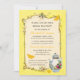 Yellow Vintage French Bridal Tea Party Invitations feature a tea pot and butterflies with a romantic French frame and damask pattern background.