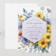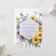 A delicate watercolor design features a vibrant mix of golden yellow blooms and soft violet blossoms, accented with wispy greenery. The artistic composition evokes a whimsical, natural feeling for a special day.