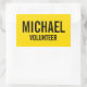 Yellow Volunteer Badge with Custom Name Rectangular Sticker