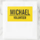 Yellow Volunteer Badge with Custom Name Rectangular Sticker