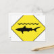 Postcard with a yellow traffic sign with a 'warning shark' icon.