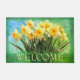 Yellow Watercolor Daffodils on Green Welcome Doormat